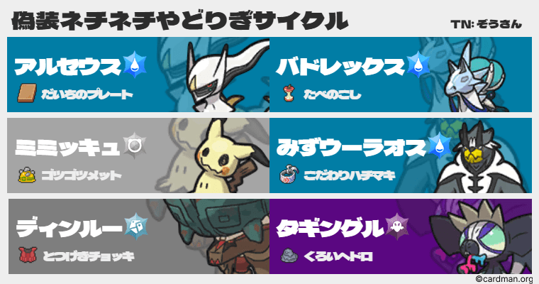 ハバタクカミがいるので、取りこぼしケアしつつ詰めていくイメージで構築を組んでいます。